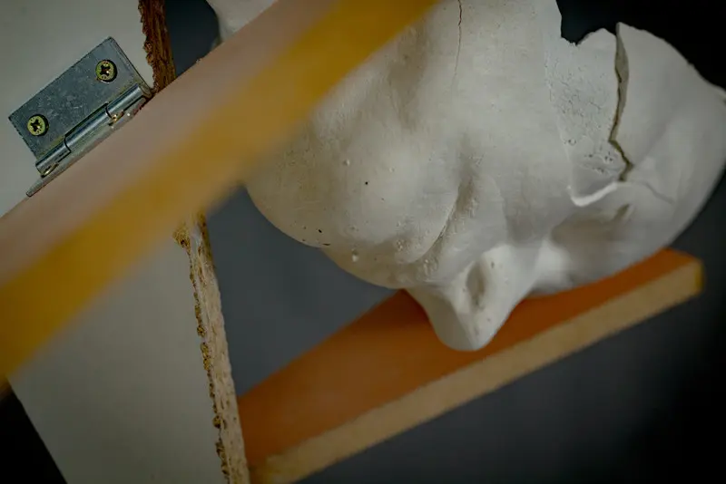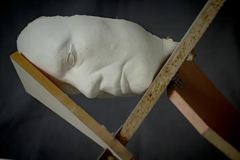 The artwork comprises roughly crafted, inexpensive waste materials supporting a human face. Within this delicate structure, a sink drain is intricately integrated, symbolising the complexities of human existence. The carefully balanced semiotics evoke the fragile nature of being, inviting viewers to reflect on the vulnerabilities inherent in the human experience.